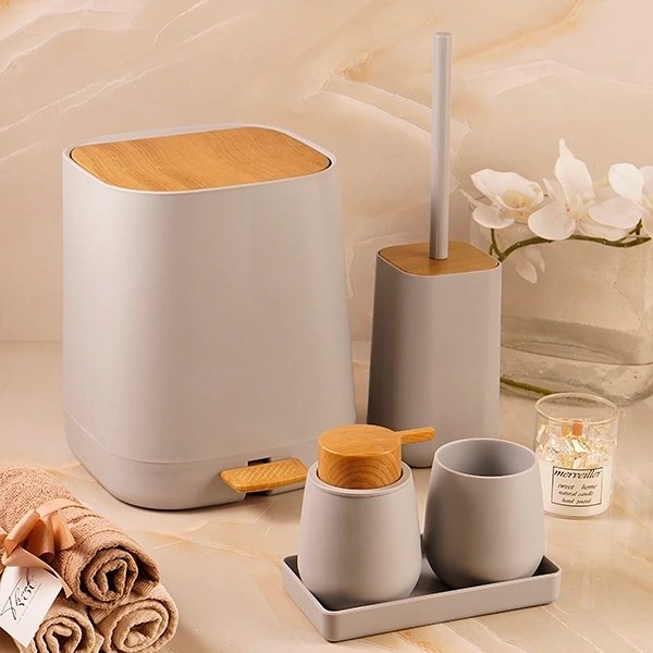 سرویس به صورت 5پارچه میباشد/درب محصول به صورت پدالی و دارای سطل دوجداره وآرام بند/جنس محصول پلاستیک فشرده